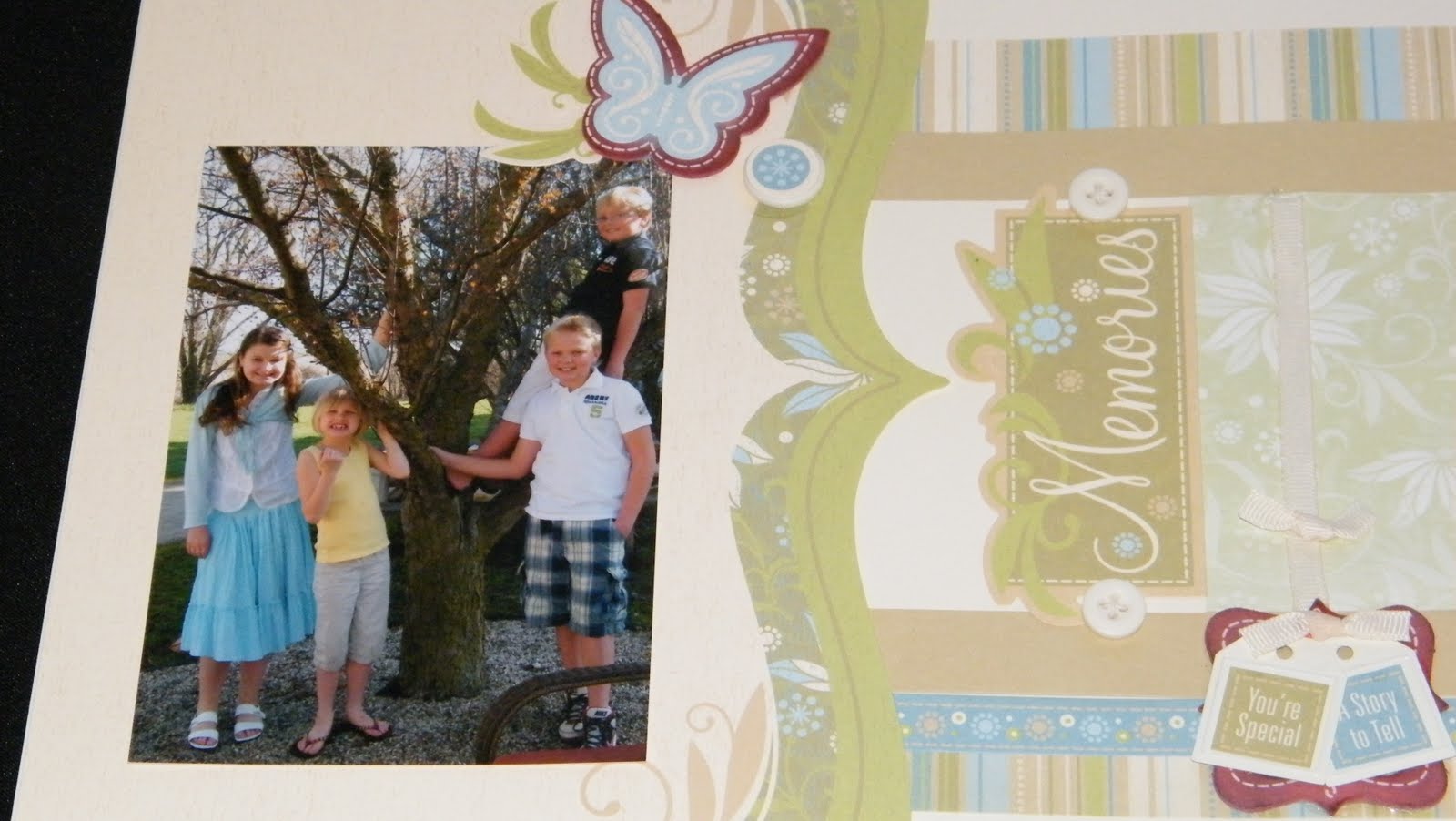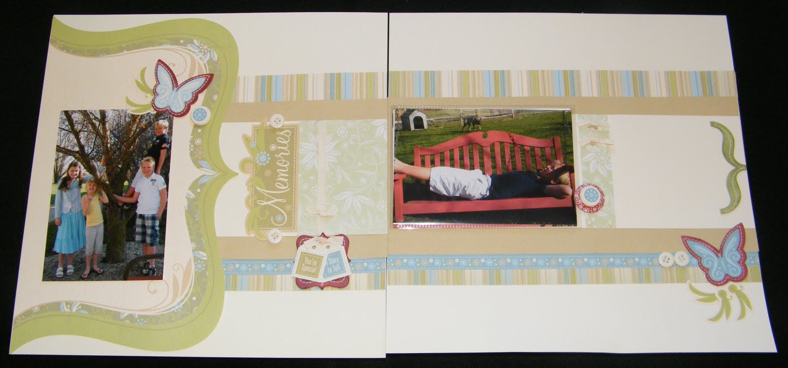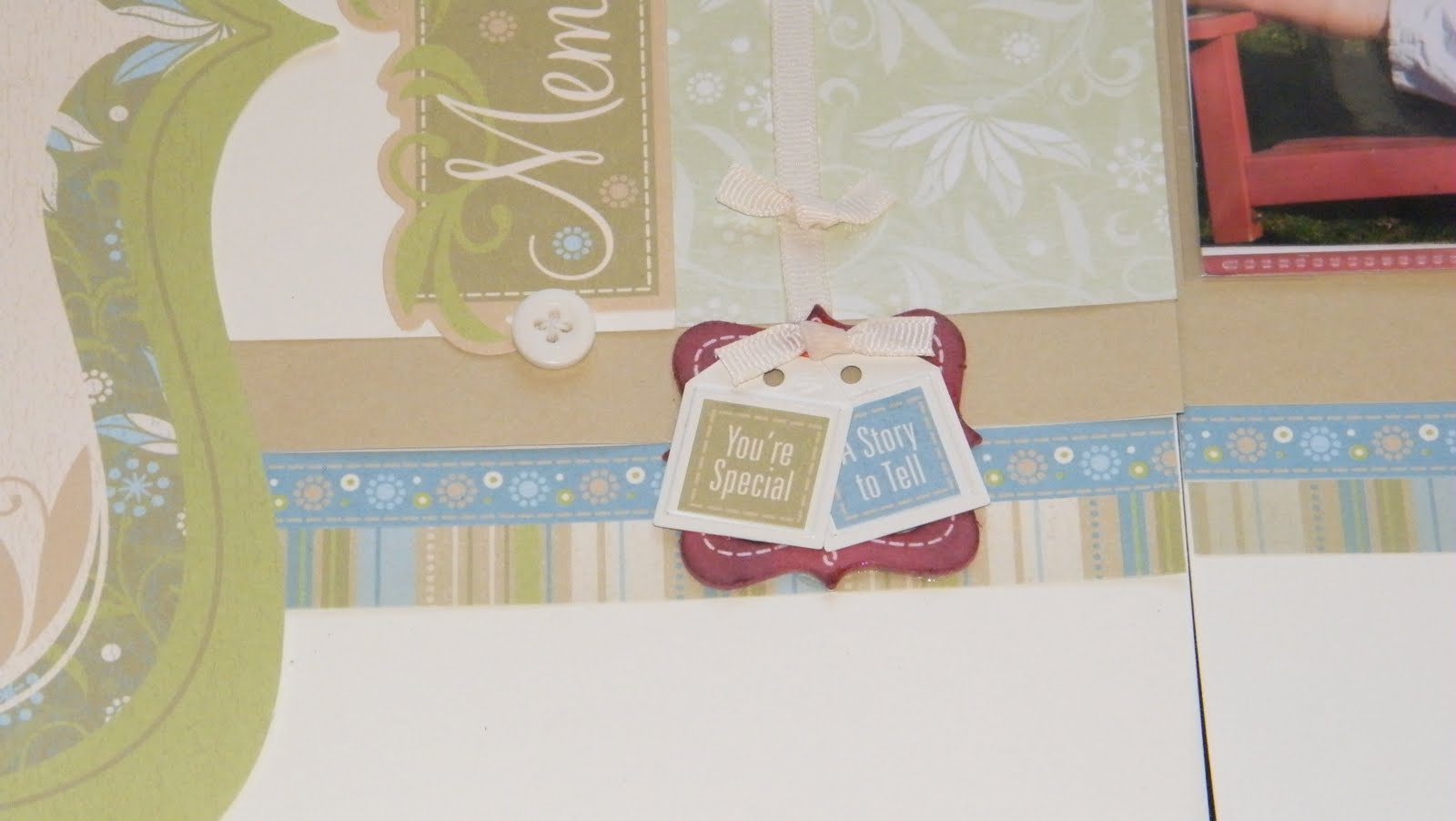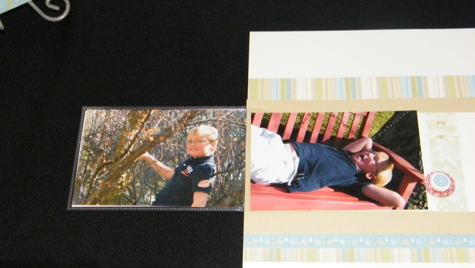 I love this scrapbooking kit’s neutral pallette. Here I added barn red ink on the irresistables to bring out the color of the swing and the boy’s clothes.