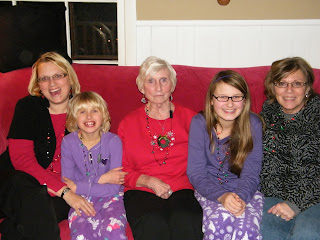 On Christmas Eve we were completely surprised when my grandma, known as Ma was sitting in my living room when we returned from church. My brother, Craig, drove all the way down to Arkansas and brought her home for Christmas as my Mom’s gift. It was a great gift for all of us to spend time with her. Can you belive she is 89 years old? Doesn’t she look amazing???