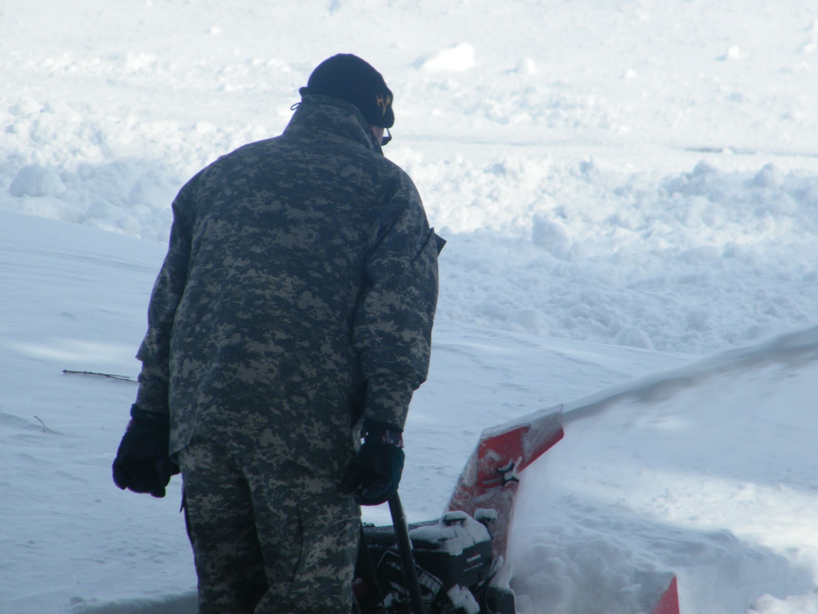 Thanks hubby for working so hard yesterday to get us out. (It pays to be married to a soldier). I hope all you who got hit are safe now. Driving and peering around these HUGE snow piles is a little bit crazy.