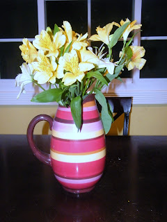 Valentine Flowers- he knows I like flowers that last. I got to put them into my $2 vase from the thrift store. I love that thing plus it has matching glasses.