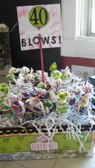 We had such a great time helping Nichole (wearing blue) celebrate and the gift was a hit. I did have to tease her a little bit. After all, I had to buy 3 bags of Blow Pops to make her little gifty. I suppose when I turn 40 {not for another 6 glorious months} wink* I will get it right back.