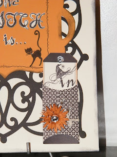 The flowers were so much fun! All I had to do was roll them up and glue them down with a little bit of Liquid Glass. I added the Glitz Glitter Gel for some bling. I also added Bitty Sparkles to give the kitty and the witch some sass. Not like this set doesn’t exude that! Oh, I also used our new Bling Assortment that includes the buttons and pins. I also used our adorable new Decor Journaling Spots for the In and Out signs. I replaced the string on the tag with bling buttons and wrapped the string around the pocket instead.