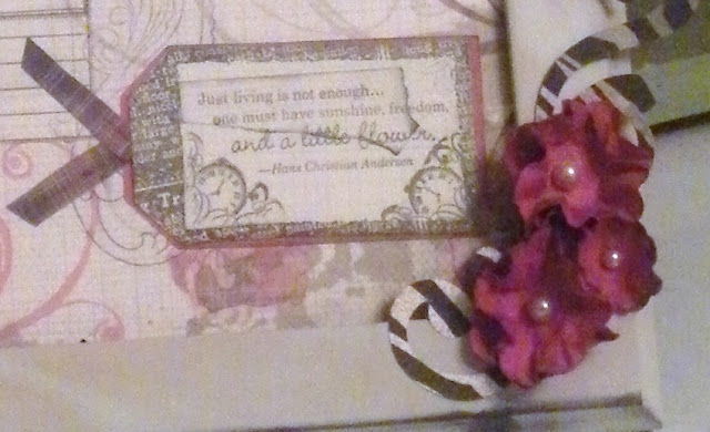 I also added some flowers from the Spring Blossom collection, pearl opaques and a funky flourish. To get the flourish all I had to do was push the font layer feature, shift and on the CTMH Cricut Art Philosophy Cartridge