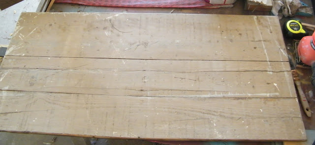 I started out with an old wooden door. We scored this in our pick a few weeks ago. I used a white wash technique and she is using it as a wooden floor now.
