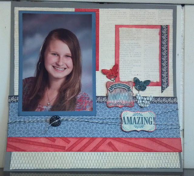 When I saw this set I thought of my 13 year old daughter, Savana. She is all these things and more. I know her 8th grade picture here is not her favorite, but I wanted to scrapbook it anyway. She is having an amazing year and is touching lives along the way.