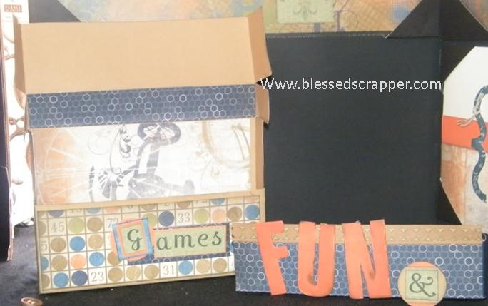 Here the box is open and you can see the closure was just a wrap that I made. In it you can place a deck of cards, a tic tac toe game and anything else you think is FUN and Games. I would probably hide chocolate- no one would look there.